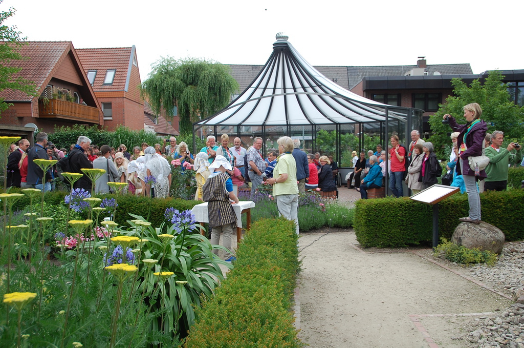 In Deutschland gibt es inzwischen 201 registrierte Bibelgärten, die sich mit der Kultivierung biblischer und klösterlicher Heilpflanzen beschäftigen und dazu pädagogische Begleitprogramme in den jeweiligen Regionen entwickeln. Unter der Schirmherrschaft von Landessuperintendent Dr. Detlef Klahr, dem Regionalbischof für den Evangelisch-lutherischen Sprengel Ostfriesland-Ems, fand die zweijährlich stattfindende Fachtagung das erste Mal in Niedersachsen statt. Gartenschaupastor Ulrich Hirndorf, selbst Mitbegründer des Bibelgartens in Twist, hatte gemeinsam mit den Bibelgärten des Emslands in Werlte und Twist für die 105 Tagungsgäste ein informatives und buntes Programm an der Historisch-ökologischen Bildungsstätte in Papenburg (HÖB) vorbereitet. Wissenschaftlich begleitet wurde die Tagung durch den Alttestamentler und biblischen Archäologen Professor Dr. Wolfgang Zwickel aus Mainz und Dr. Ronja Jakob, ebenfalls Mainz, die vor kurzer Zeit über die Salbölerstellung im alten Israel eine Doktorarbeit verfasst hatte. Sie erarbeitete auf einem der zahlreichen Workshops mit den Teilnehmern ein Rezept und bereitete eine Salbölmischung zu, die am Sonntag zum Ausklang der Tagung im Salbungsgottesdienst auf der Landesgartenschau mit Regionalbischof Klahr und Pastor Hirndorf verwendet wurde. Über 160 Gottesdienstbesucher nahmen das Angebot dieser besonderen Segnung an.