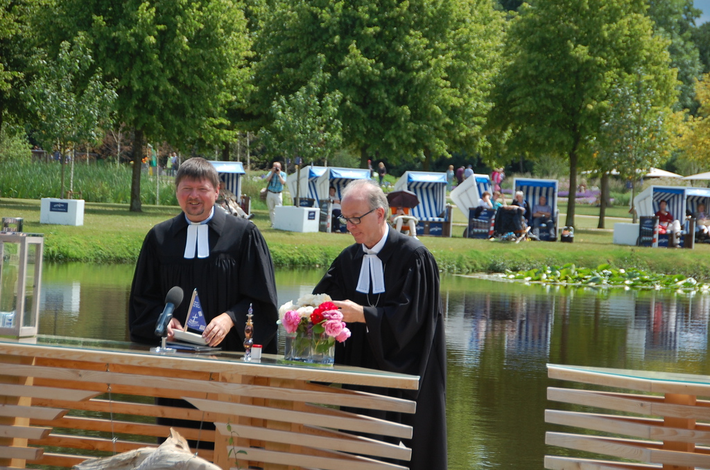 Landessuperintendent Dr. Klahr thematisierte in seiner Predigt die Pflanzen und ihren Bedeutungsgehalt für den Glauben: „Christus selbst hat die Blumen und Pflanzen zum Sinnbild für den Glauben gewählt. Wir können von ihnen lernen etwas mit Geduld wachsen und gedeihen zu lassen, das tut Menschen in ihrer Entwicklung gut." In Erinnerung an den Beginn des Ersten Weltkrieges vor hundert Jahren sagte der Regionalbischof weiter: „Es ist ein Geschenk, im Frieden zu leben, zu säen und auch zu ernten, ohne Angst ums Überleben. Jede kleine Blume kündet in ihrer Zartheit und Vergänglichkeit davon, wie sehr wir uns für Frieden und ein friedliches Miteinander aller Menschen einsetzen müssen, wie sehr wir auch den Frieden wie eine wertvolle Pflanze hegen müssen. Wo Blumen blühen ist Hoffnung auf Leben in Frieden!"